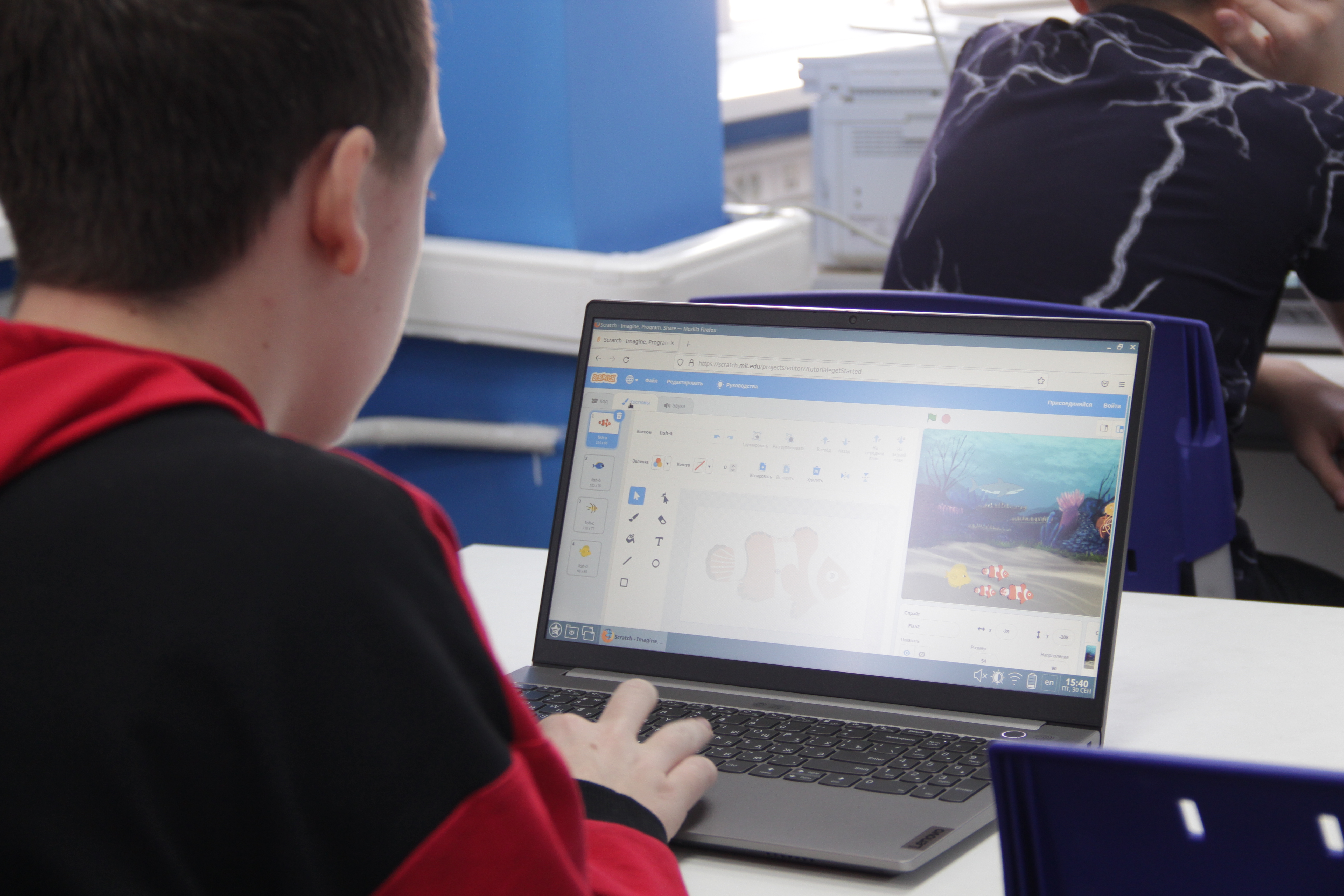 В рамках творческих мастер-классов, ребята попробовали свои силы в программировании, создав игровое приложение на языке Java, а также мультфильм «Подводный мир» в среде программирования Scratch.